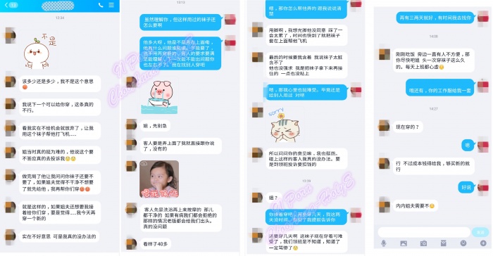 然后她打了一个电话后让我等一会,她说联系的这个妹妹是她合租的姐妹,白天在洗浴做按摩晚上和她一起在夜场做,她上次有客户要买袜子结果一直没来,说可以找她买,不过她颜值高所以收费可能要高一些。