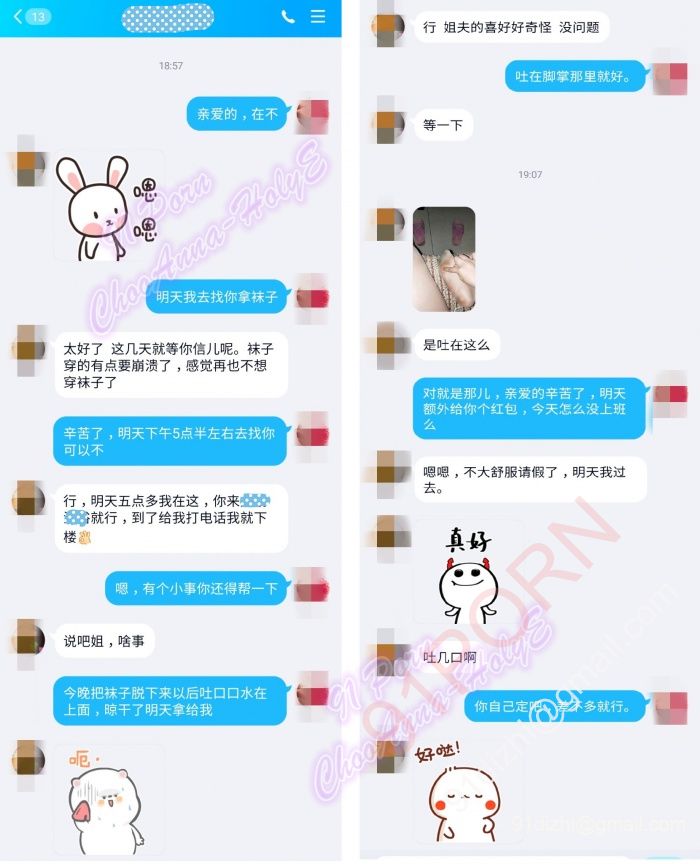 就这样我每天都坚持做着“热身运动”她也每天都在给我穿着袜子。坦白讲虽然同为女性但是每次看到她发来的图片总是让我眼睛里冒火一样欲火焚身...就这样一天天的等着,心里变得越来越期待。直到第16天的时候小主告诉我让我要求穿袜子的女孩在袜子上吐口口水....